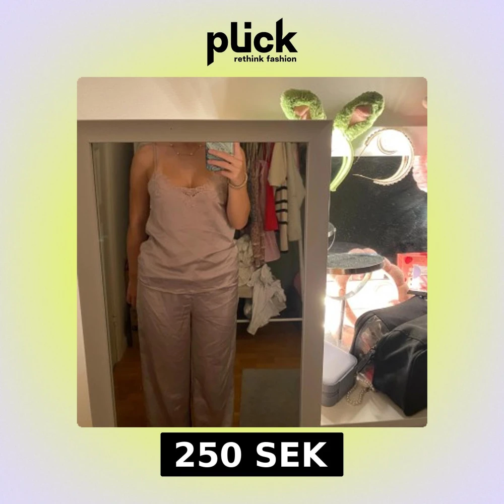 Söt tvådelad pyjamas, ljusrosa/ljuslila i satin💕💕