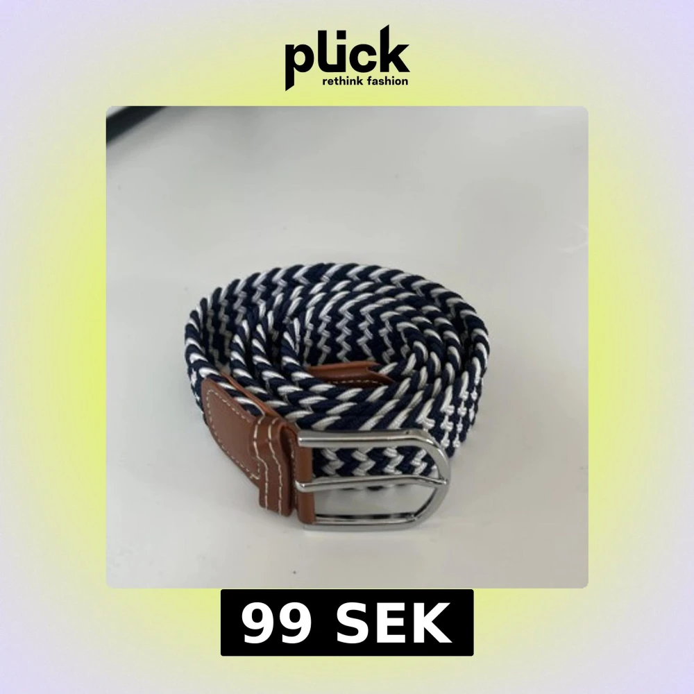 Snyggt flätat bälte i marinblått och vitt med bruna läderdetaljer vid spännet. Bältet har ett klassiskt silverfärgat spänne och är gjort i ett mjukt, flexibelt material som ger en sportig och fräsch look. Perfekt för att lyfta vilken outfit som helst.