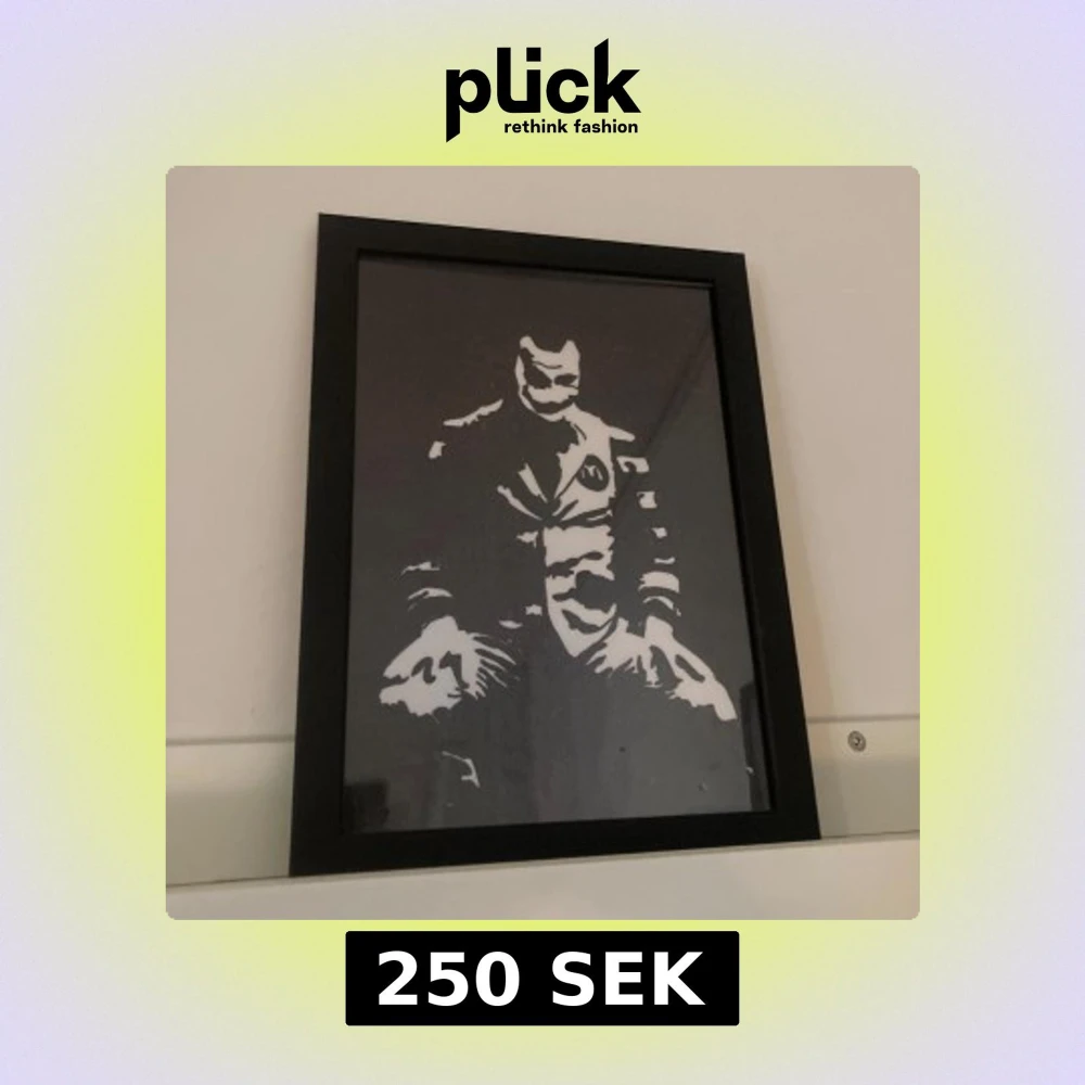 Fyra svartvita tavlor med skräckmotiv i svarta ramar. Varje tavla har en distinkt stiliserad bild av en skräckfigur, vilket ger en dramatisk och mystisk känsla. Bild 1-4 A4 pappers storlek. Bild 5 20 x 20 cm.