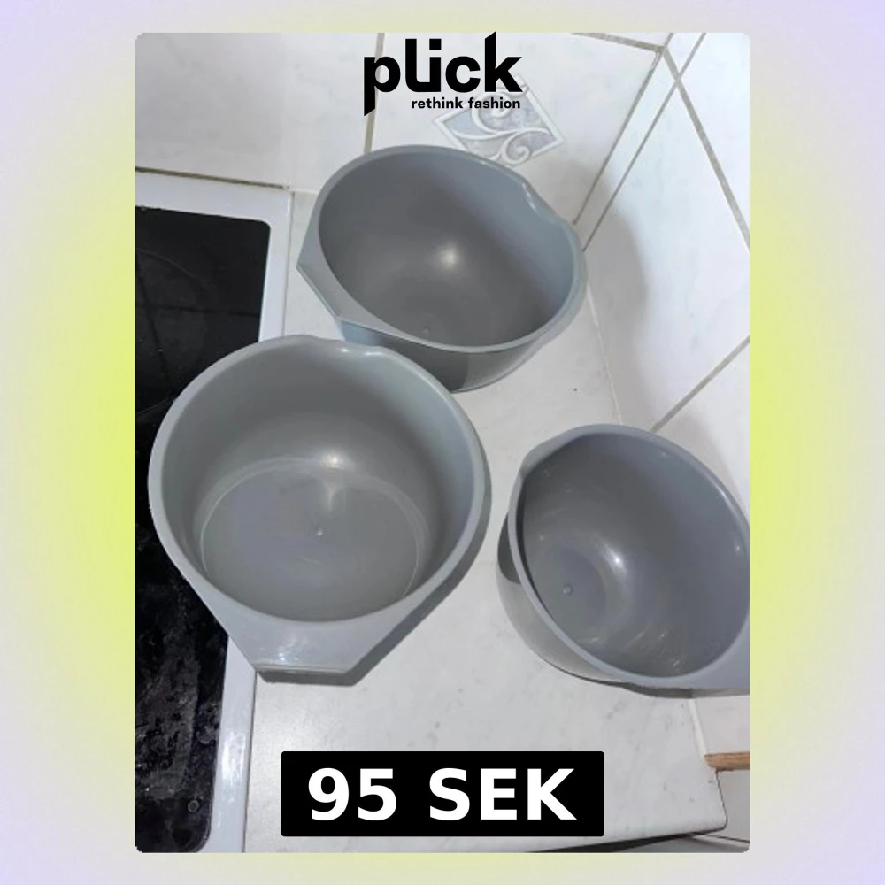 Tre stycken Grå vispskålar med måttangivelser. 🍲 🎂