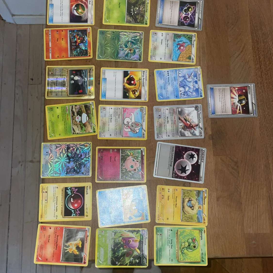 Stor samling Pokémonkort med både vanliga och holografiska kort. Perfekt för dig som vill bygga din egen lek eller utöka din samling. Här hittar du många olika Pokémon och tränarkort – en grym mix för både nya och erfarna samlare! 22 sällsynta kort