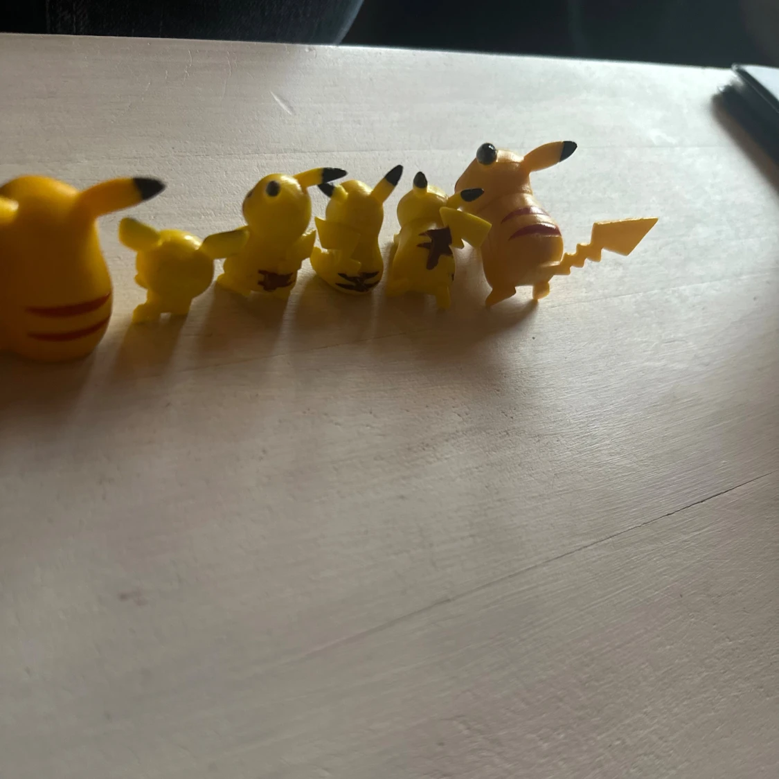 Bilderna visar flera små Pikachu-figurer i plast, perfekta för Pokémon-fans som vill dekorera sitt rum eller samla på sina favoritkaraktärer. Figurerna är färgglada och detaljerade, och passar både som samlarobjekt och som coola dekorationer för unga och unga vuxna. Pris går att diskutera