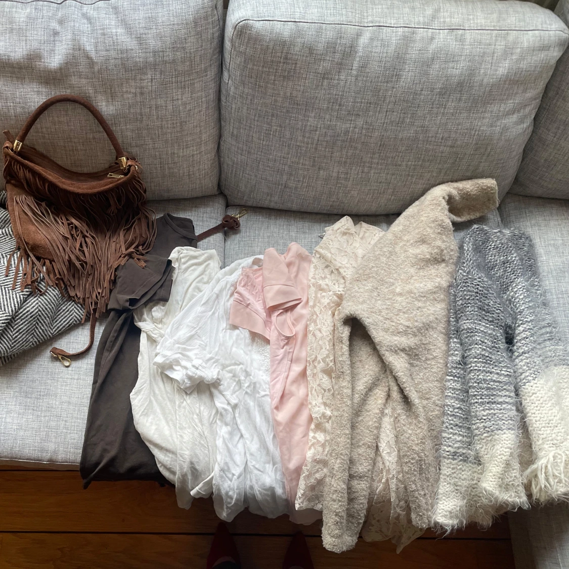 Säljer en snygg brun axelväska med fransar. Väskan är perfekt för att ge din outfit en bohemisk touch. Den är rymlig och praktisk för vardagsbruk./plick. Mer eller mindre.. lite blandat. Lägger upp plaggen var för sig snart