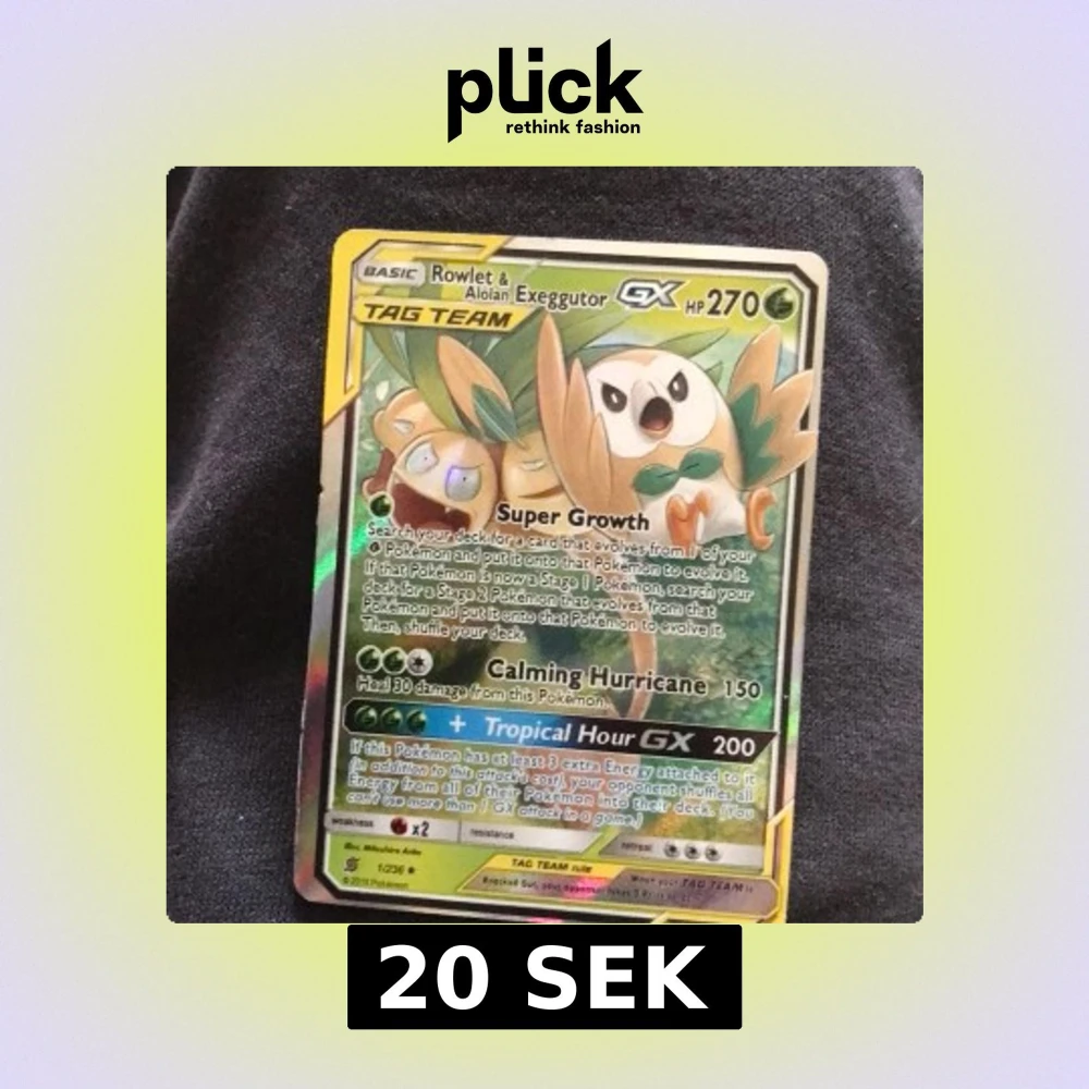 Cool Pokémon GX-kort med Rowlet och Alolan Exeggutor i ett tag team! Perfekt för samlare och spelare som vill boosta sin lek med kraftfulla attacker och snygg design. Kortet är holografiskt och har unika förmågor som Super Growth och Tropical Hour GX.