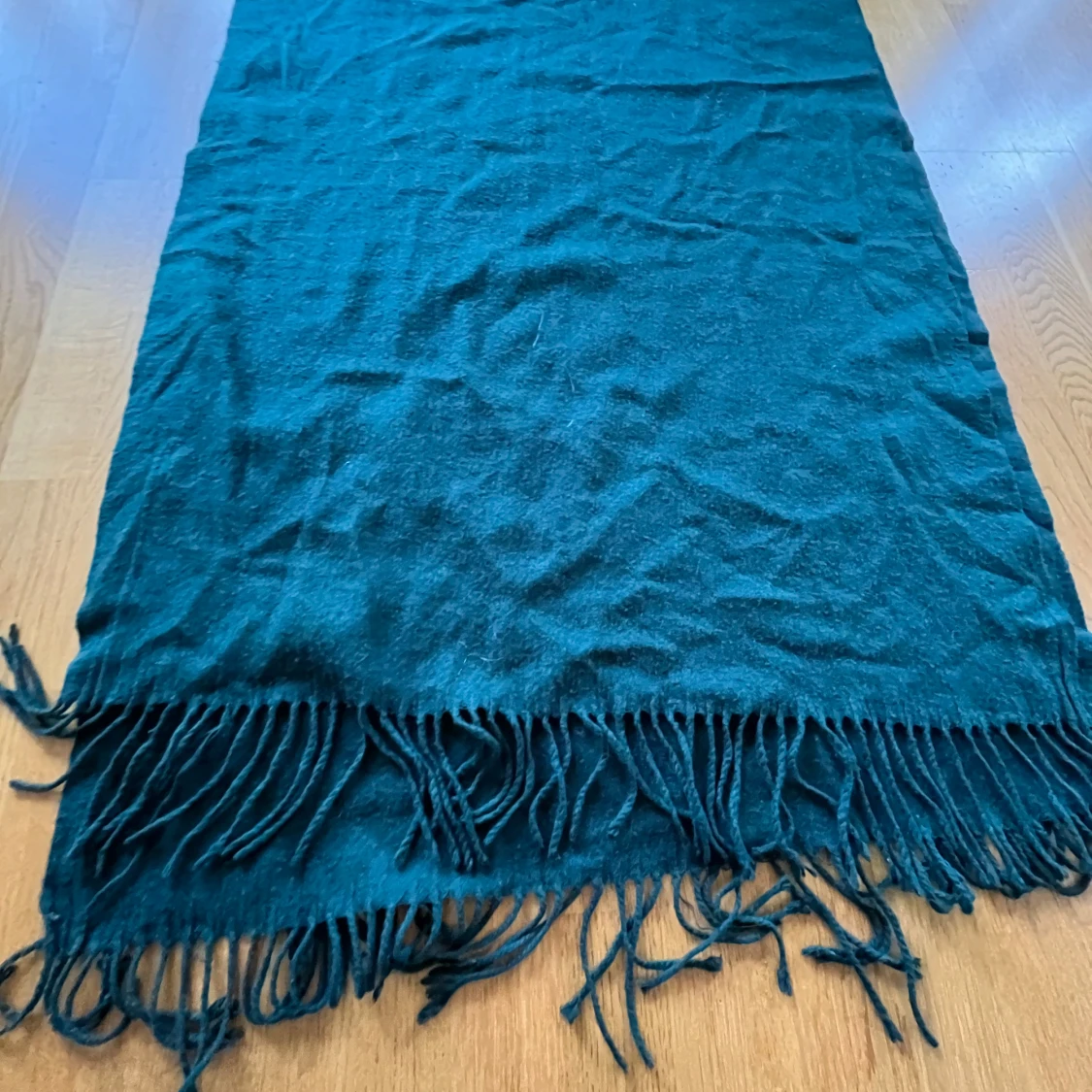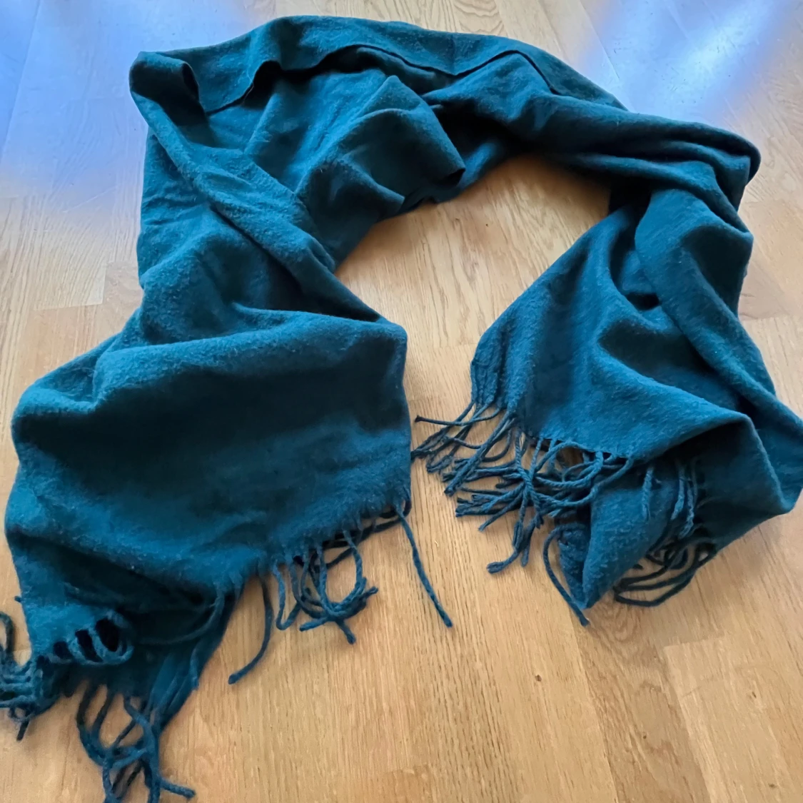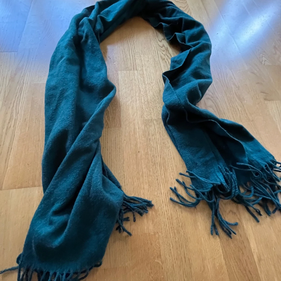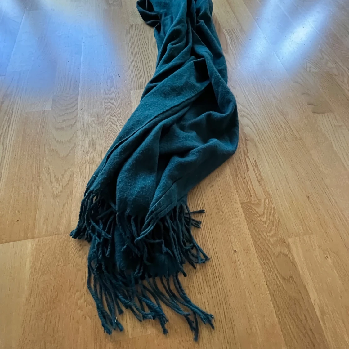 En stor och mjuk halsduk i mörkgrönt med långa fransar i kanterna. Perfekt att svepa runt halsen för extra värme. Halsduken är enfärgad och har en klassisk, tidlös look som funkar till de flesta outfits. Säg till om du vill ha fler bilder🤗