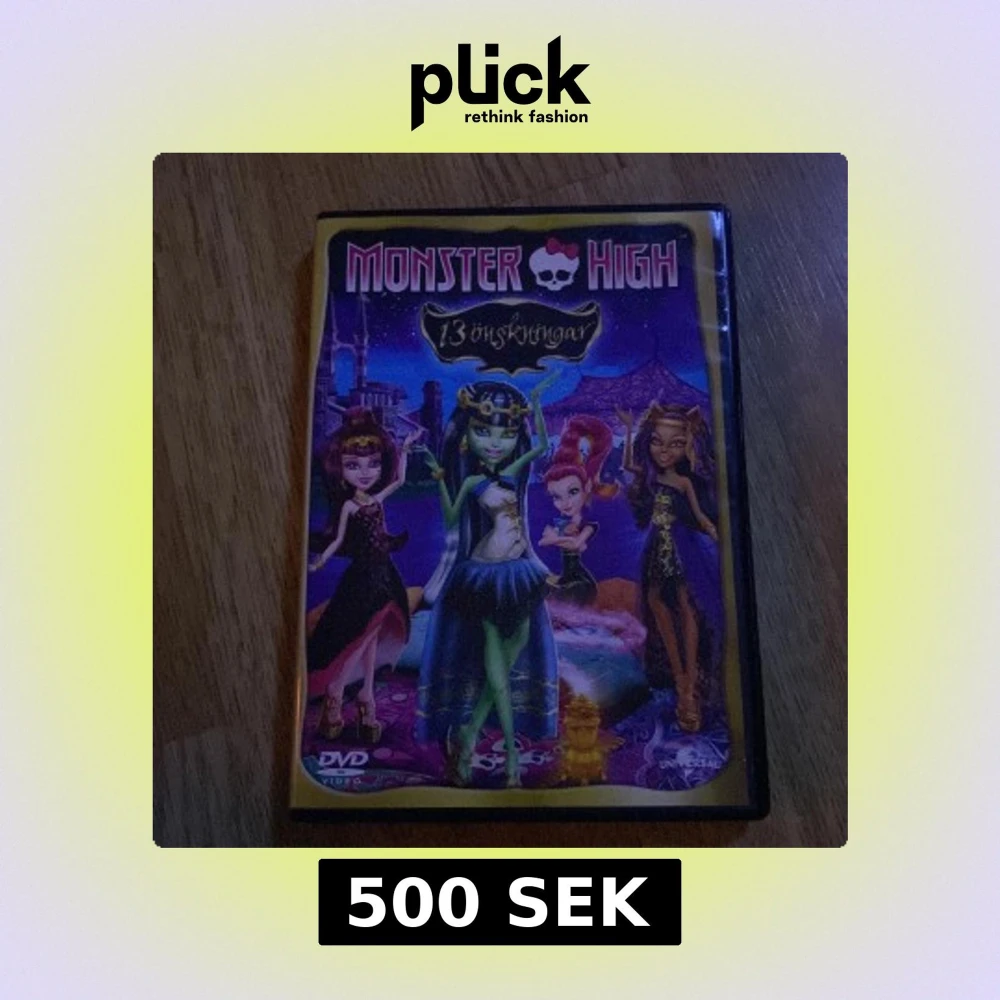 Monster High: 13 önskningar är en animerad film på DVD där karaktärerna från Monster High hamnar i ett magiskt äventyr med önskningar och mystik. Omslaget är färgglatt med flera av de ikoniska Monster High-figurerna i centrum.