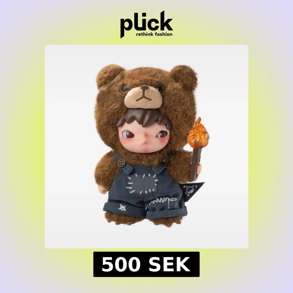 Äkta samlarfigur från Pop Mart, Hirono Fight For Joy, i björndräkt med fackla. Levereras i obruten originalförpackning. Perfekt för samlare eller som present.