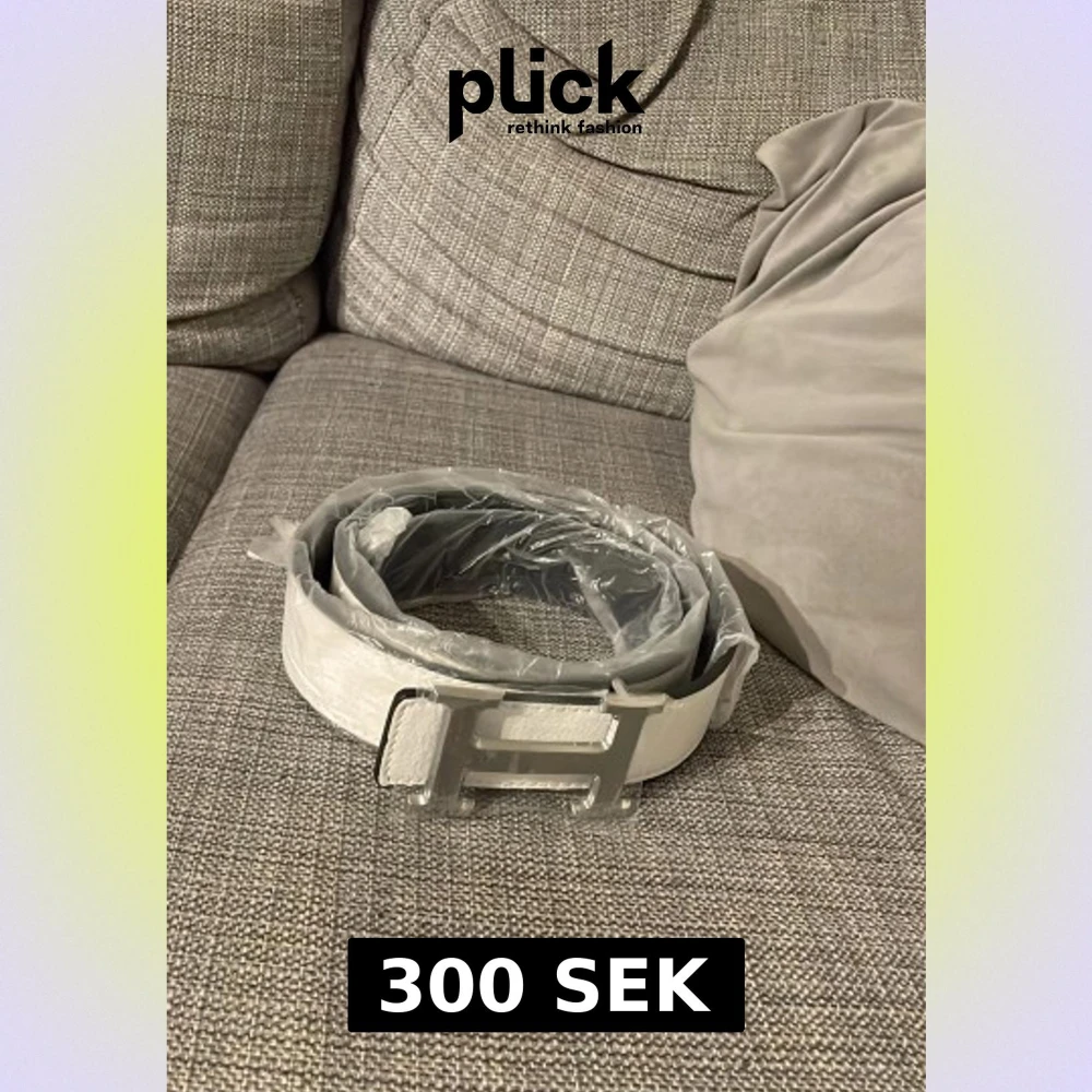 Snyggt vitt bälte med ett stort, stilrent H-format spänne i silver. Bältet är gjort i skinn och har en clean look som passar till många outfits. Perfekt accessoar för dig som vill sticka ut med en modern och fräsch detalj.