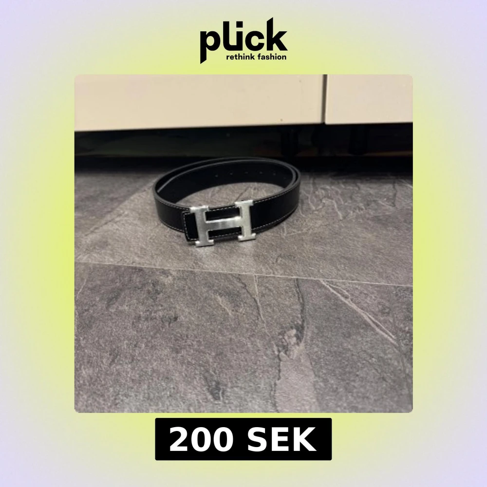 Snyggt svart skärp med ikoniskt H-spänne i silverfärgad metall. Bältet är gjort i präglat skinn med vita sömmar längs kanterna. Perfekt accessoar för att lyfta din outfit med en lyxig touch.