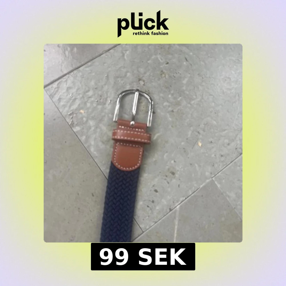 Snyggt mörkblått flätat bälte med detaljer i brunt skinn och silvrigt spänne. Bältet har en stilren och klassisk look med kontrastsömmar på skinnet. Perfekt för att ge outfiten en extra touch. Passar till jeans eller chinos.