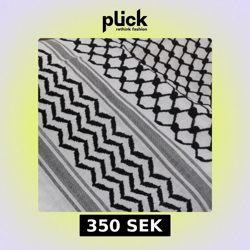 Säljer en klassisk palestinsk sjal i vitt och svart i originalt klassiskt mönster. Sjalen är stor och luftig, perfekt att vira runt halsen eller axlarna. Materialet är 100% bomull och har fransar längs kanterna. Säljes i nyskick med originalförpackning