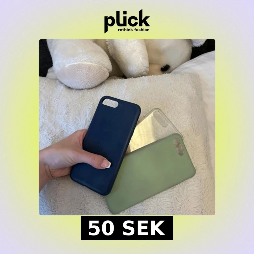Säljer tre olika mobilskal. Ett mörkblått, ett genomskinligt och ett ljusgrönt. Alla passar iphone 8+