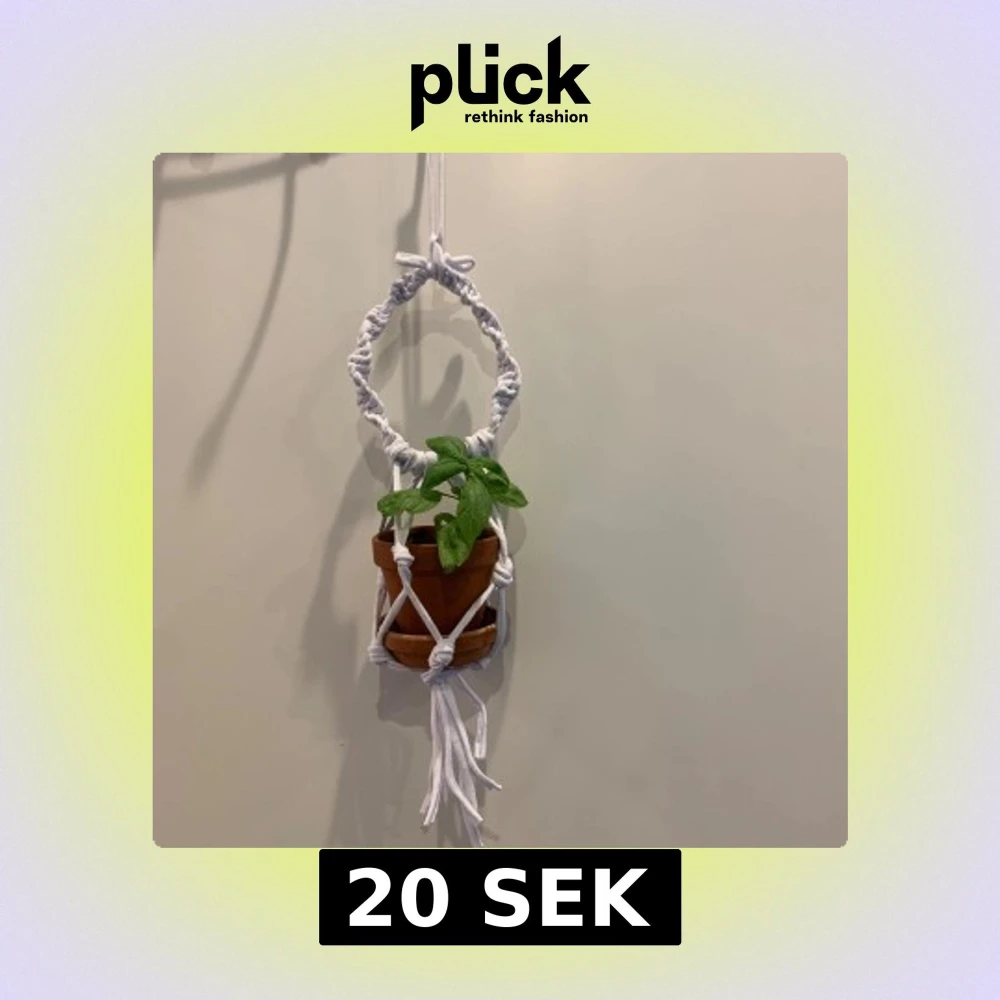 Upptäck hur du enkelt kan få en härlig känsla av makramé-amplar för att hänga växter snyggt i hemmet. Säljer en unik vit ampel i makramé-stil. Ampeln har en rund form och är handgjord med tjockt vitt bomulls snöre. Perfekt för dig som vill ha en cool inredningsdetalj med boho-vibe. Ampeln har en öppen topp och dekorativa knutar.