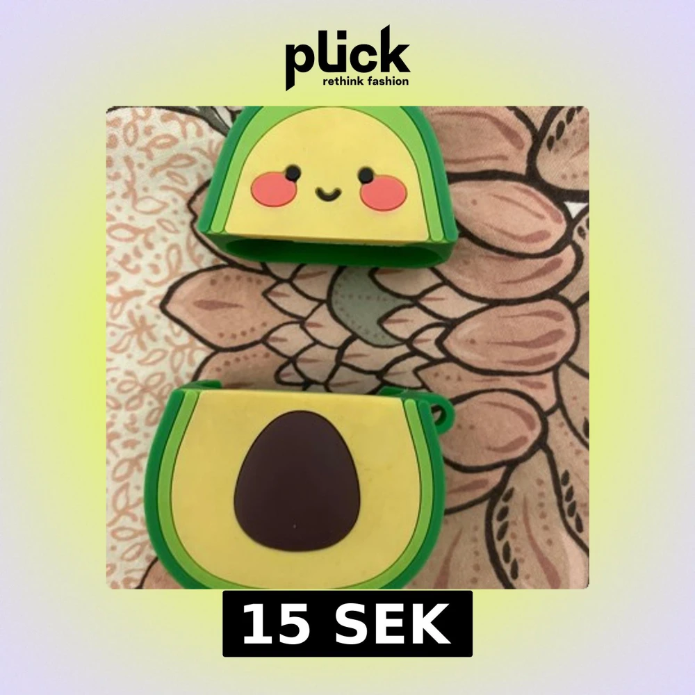 AirPod fodral av silikon som ser ut som en avocado. Jag tappade bort mina AirPods så har ingen användning för den någon mer. Knappt använd, men har ett litet märke. Pris kan diskuteras