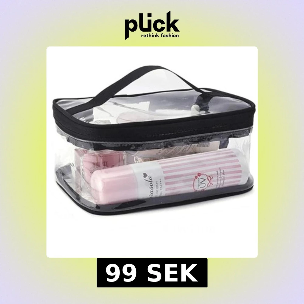 praktisk transparent necessär med ett handtag. Perfekt för smink behållare när man åker bort
