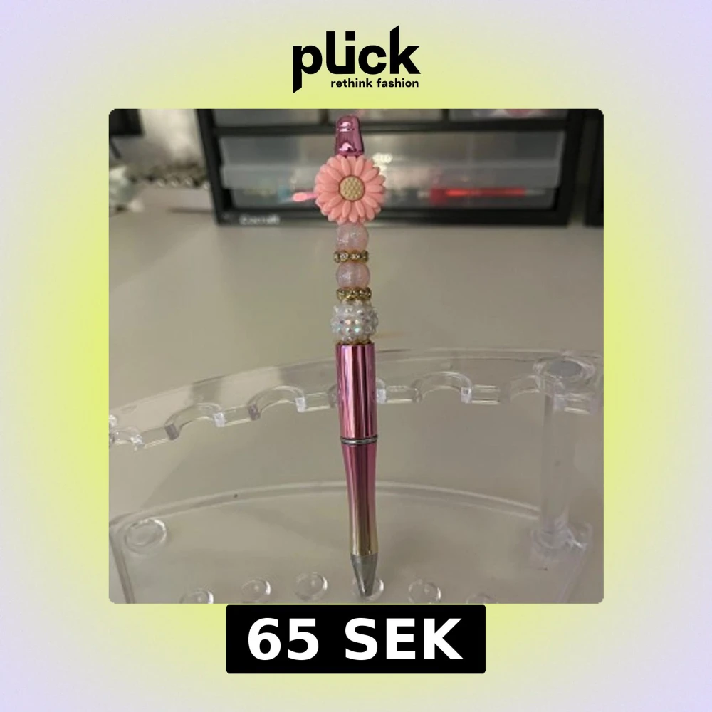 Hemmagjord rosa penna med en blomma på toppen🌸