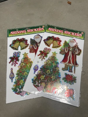 Två ark med glittriga julklistermärken – tomtar, julgranar, klockor och pynt. Perfekt för att dekorera anteckningsböcker, mobilskal eller julklappar! Lätta att använda, återanvändbara och ger extra festlig känsla till dina saker.