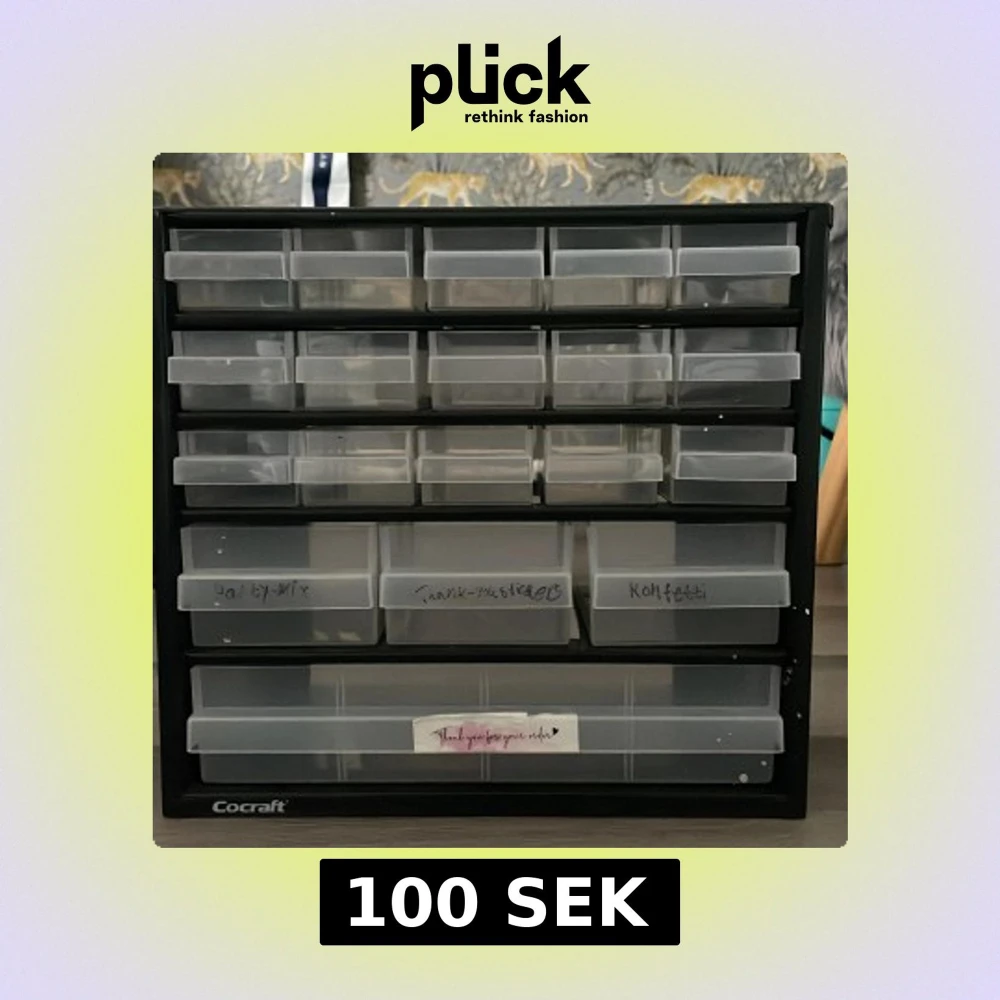 Säljer denna förvaringslåda som jag har haft mina smycken i , kan avändas till vad som hälst !(kommer ta bort den svarta texten på lådorna ) Pris 80kr