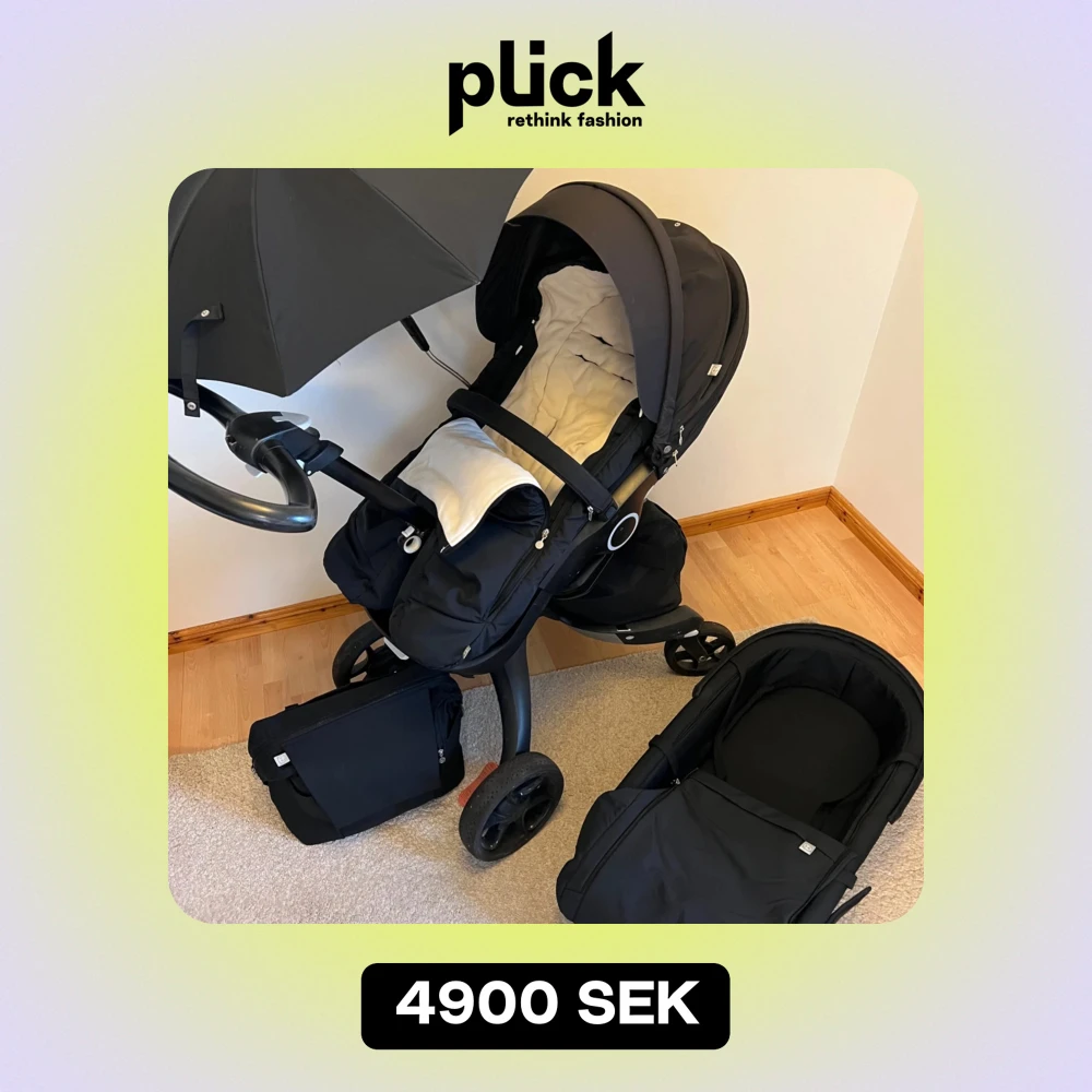 Säljer en stilren svart barnvagn med matchande parasoll och sittdyna. Vagnen har en modern design med stora hjul för enkel manövrering. Perfekt för både stadspromenader och utflykter. Inkluderar även en avtagbar liggdel för de minsta. Allt i mycket bra skick!