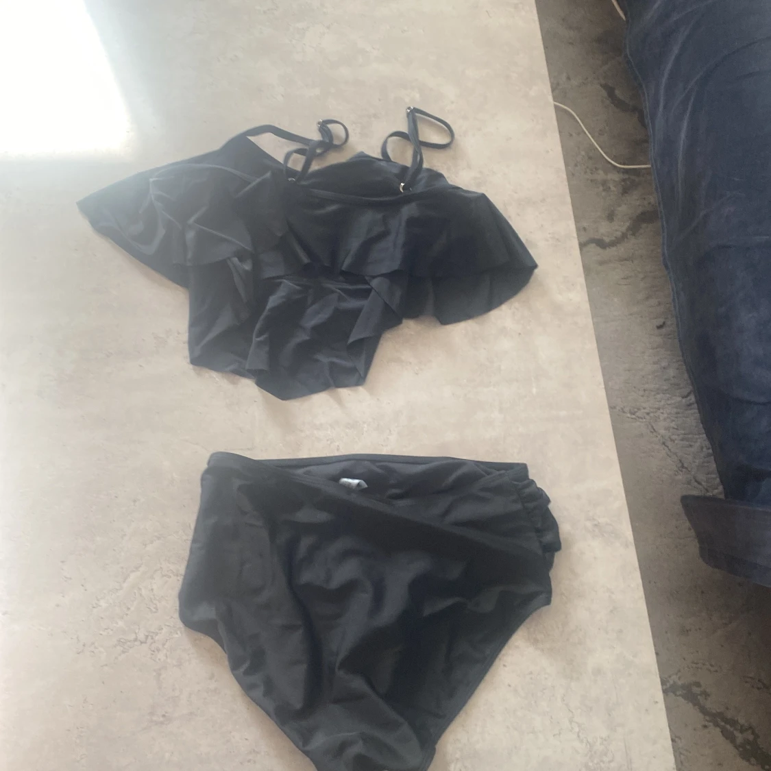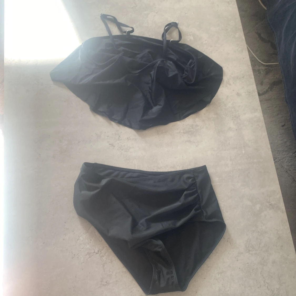 Snygg svart bikini från Shein med hög midja och justerbara axelband. Toppen har en stilren design och byxorna är bekväma med bra täckning. Perfekt för en dag på stranden eller vid poolen.