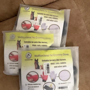 Säljer multifunktionella djurvårdshandskar från Herano. Perfekta för att sköta om hästar, hundar, katter och kaniner. Handskarna är grå och har silikonknoppar för effektiv borstning. De är andningsbara och bekväma att använda. Kan även köpas styckpris för 65 kr.