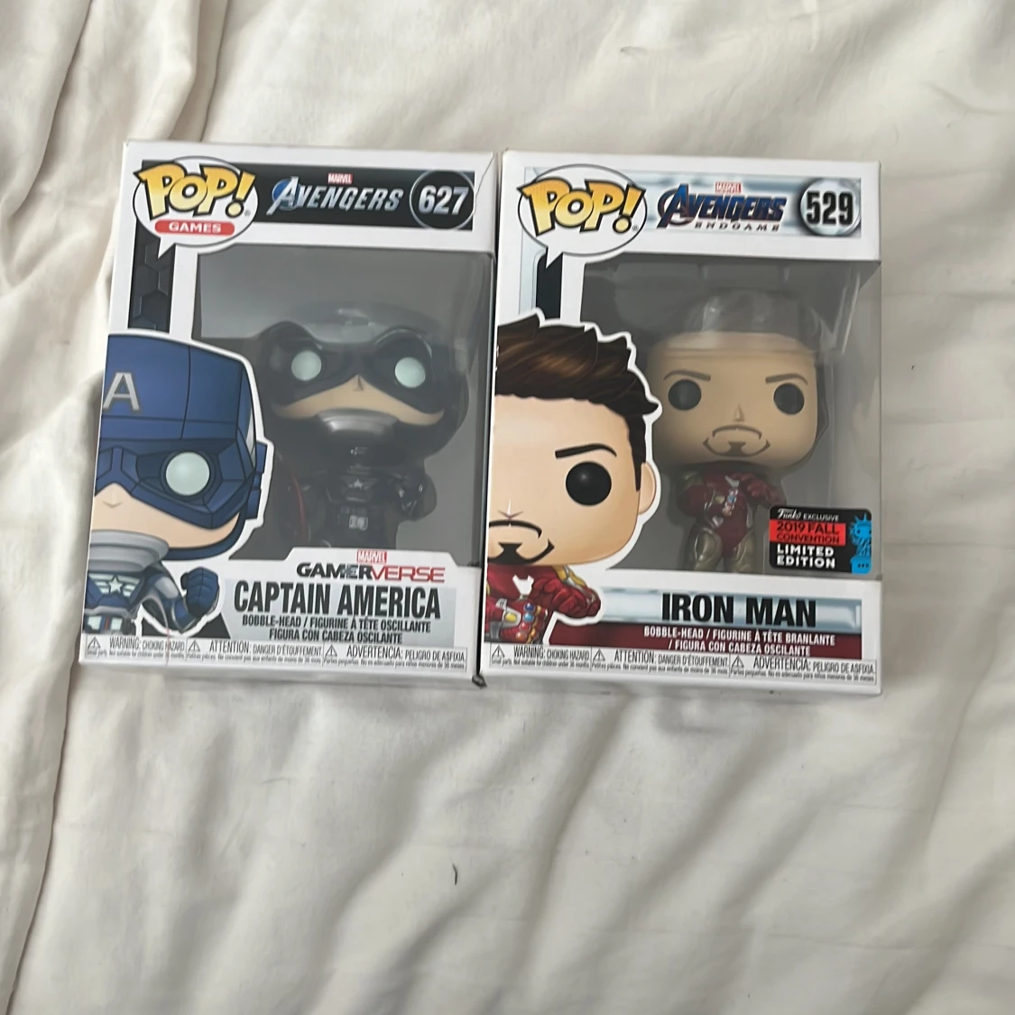 Två coola Funko Pop!-figurer: Captain America från Gamerverse och Iron Man från Avengers: Endgame. Perfekta för Marvel-fans och samlare som vill ha sina superhjältar på hyllan! Limited Edition Iron Man ingår. 600 för båda 300kr för en, pris kan diskuteras.