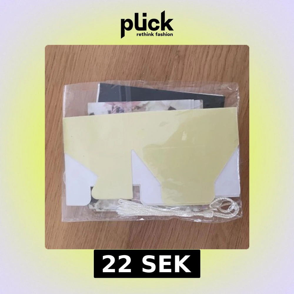 Bilderna visar ett set med dekorativa kort, kuvert och snöre, för pyssel eller presentinslagning. produkten i nyskick utan synligt slitage eller defekter.