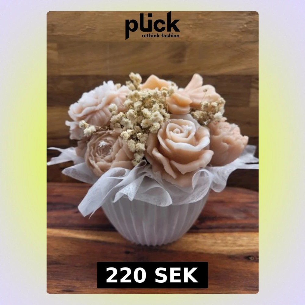 Mini bukett blommer av ljus samt en handgjord kruka finns i all färger samt doft