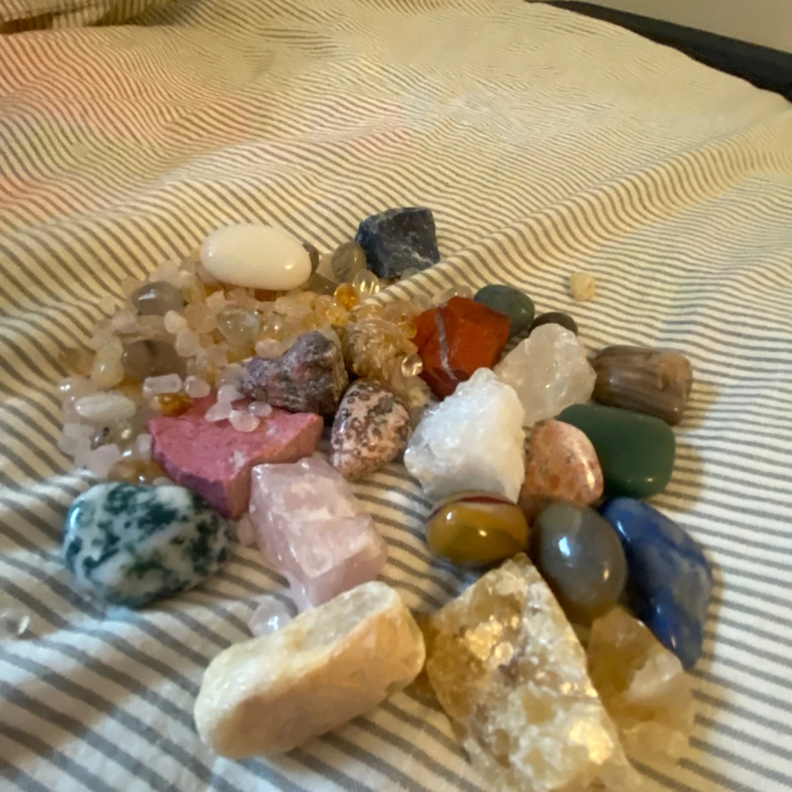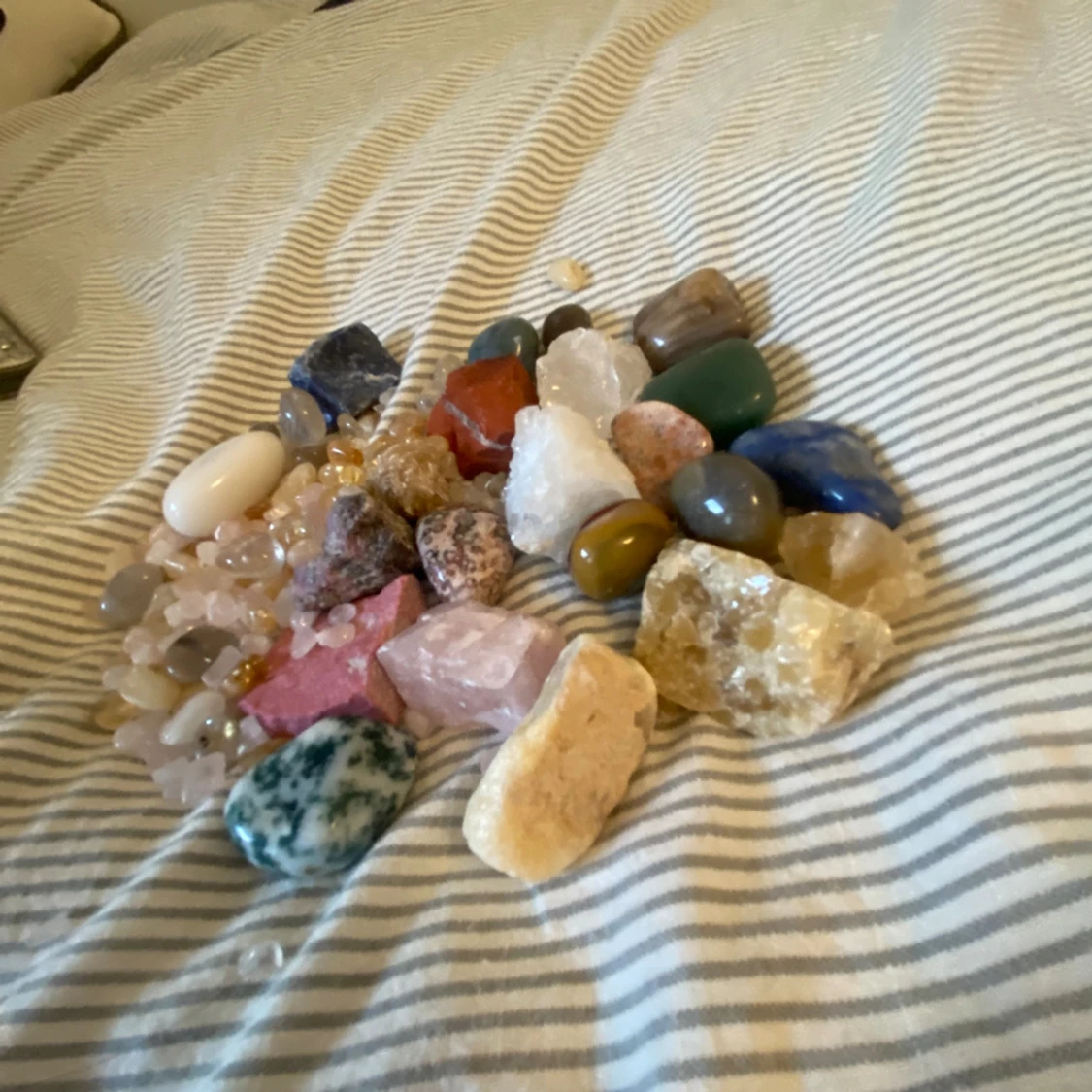 Väldigt många kristaller. Dom e äkta😇 24 st + massa små chips