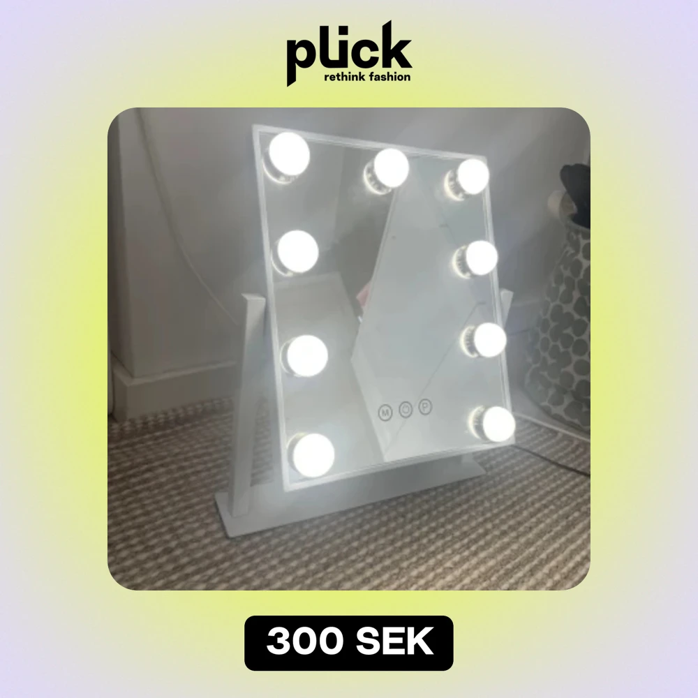 Denna sminkspegel har tre olika ljus som ni kan se på bilderna. Man kan även höja och sänka ljusstyrkan. Hör av dig vid funderingar!💗