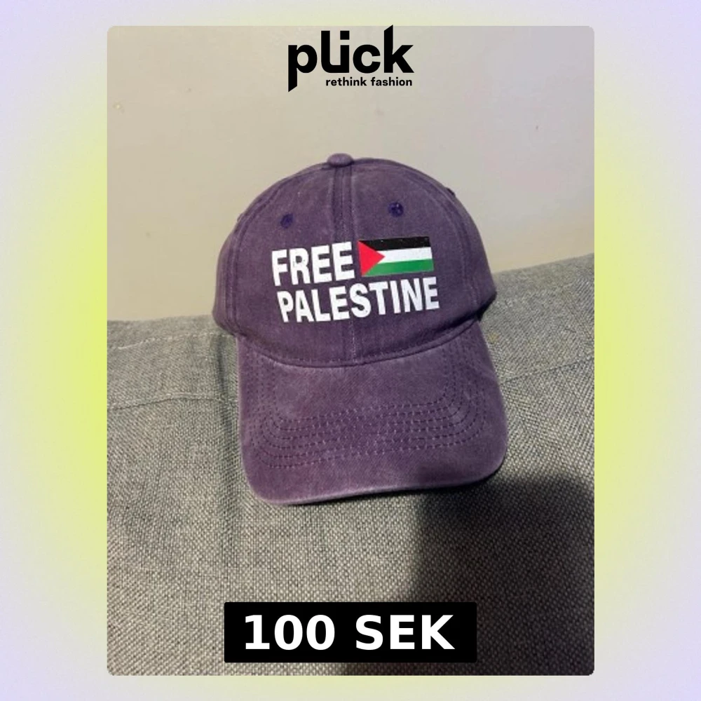 Lila keps med böjd skärm och justerbart spänne bak. Framsidan har ett tryck med texten 'FREE PALESTINE' och en flagga i rött, grönt, vitt och svart. Kepsen är tillverkad i bomull och har en klassisk, avslappnad look som passar till streetwear.FREE PALESTINE KEPS - GÅRDA WASHED DEN ÄR HELT LILA MEN SISTA TVÅ BILDRER BARA VISAR HUR DEN SER UT. Detaljinformation: Tillverkad av 100 procent bomull One Size Justerbar vid kepsens baksida Gjord av: 100% bomull