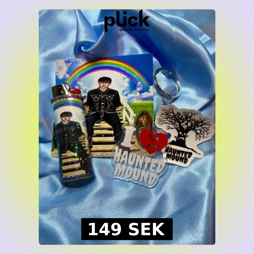 ⭐️1st Refillable BIC MAXI LIGHTER med wrap & rhinestones, I ❤️ HAUNTED MOUND KEYCHAIN + photocard & harold sticker ⭐️ ✨OBS: under lighter drop 13/12 kommer endast de lighters som har foto och eller sticker med sig i bilden inkludera det, de lighters som ej har något mer i bilden kommer utan något extra!✨🤍 FREEBIES (godis & random stickers) ingår alltid i alla paket 🤍