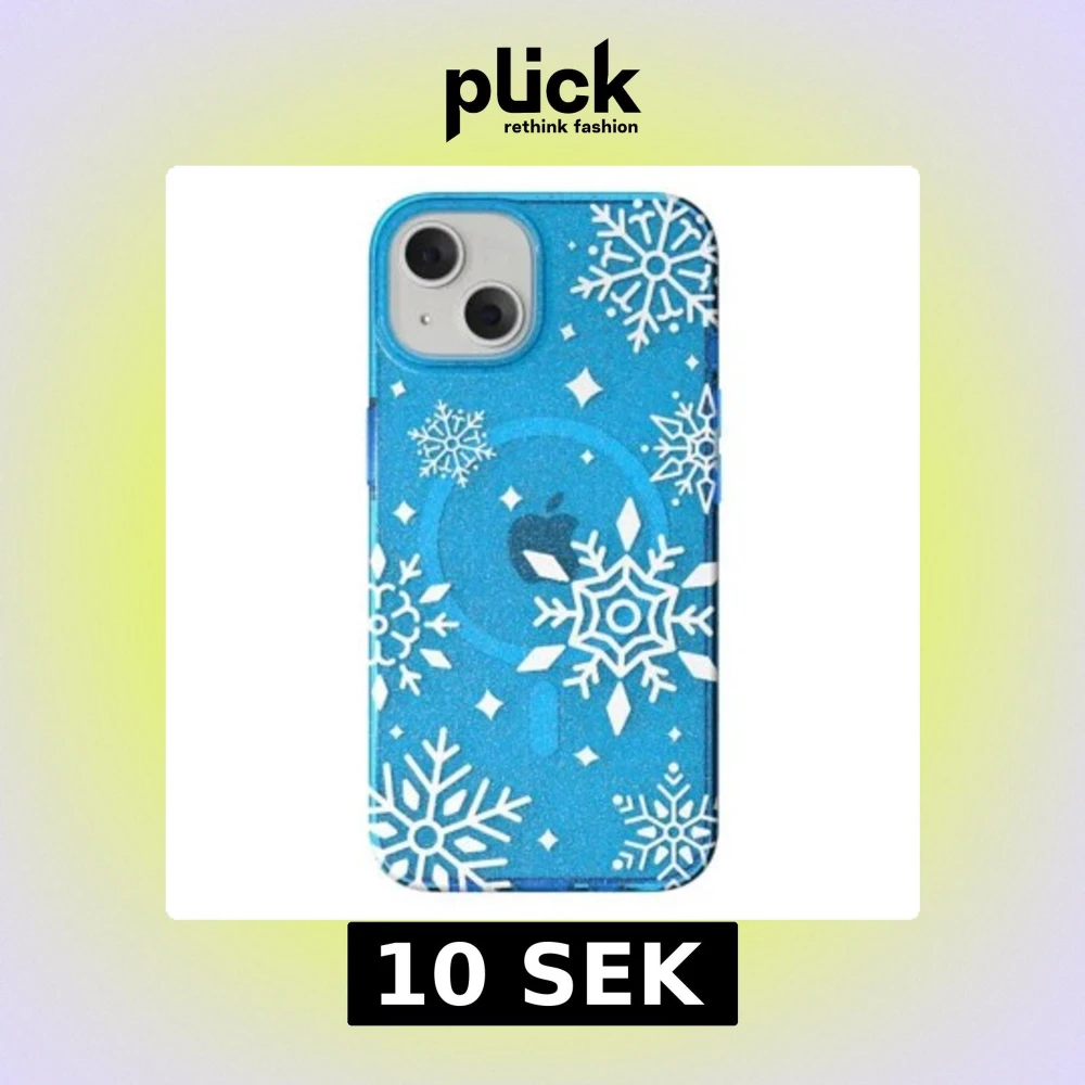 ett blått skal med glittrande snöflingor, vilket ger ett unikt och festligt utseende.