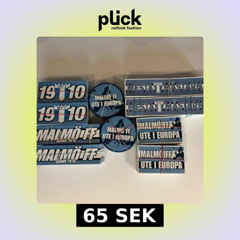 50st MFF klibbor i olika storlekar och motiv, perfekt för di blåe supportrar! Inkluderar motiv som 'Mesta Mästarna', '1910', 'Malmö FF Ute i Europa' och fler. Klibborna är nya och i utmärkt skick, redo att pryda laptop, bil eller andra ytor.