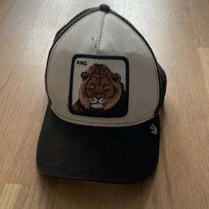 Snygg keps i svart och beige med ett broderat lejonmotiv på framsidan. Kepsen har en klassisk design med nätmaterial på baksidan för bättre ventilation. Perfekt för en avslappnad stil.