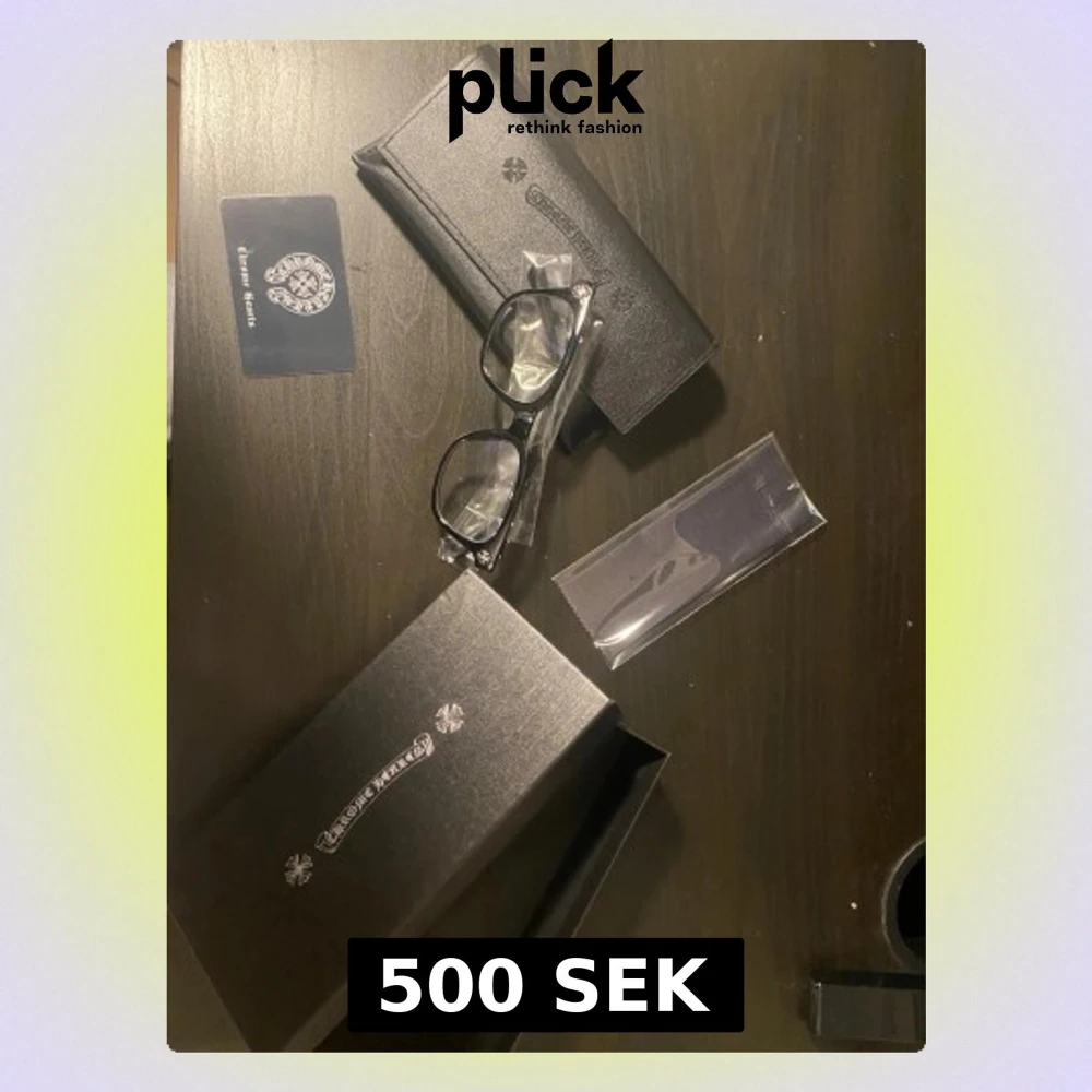 Säljer svarta glasögon från Chrome Hearts i stilren design med logga och detaljer i silverfärg. Fodralet är gjort i konstläder och kommer med putsduk och originalbox.