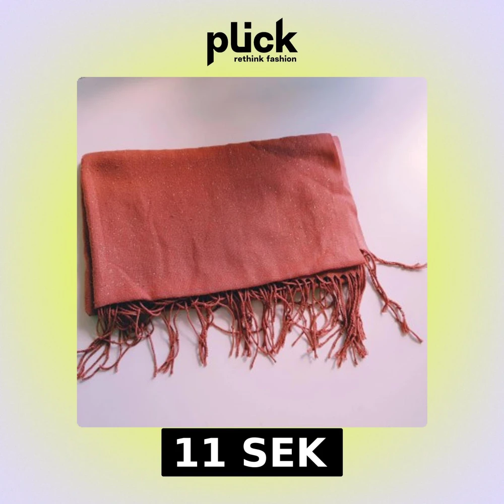 Snygg korall halsduk med glittriga detaljer och långa fransar i ändarna. Perfekt accessoar för att lyfta din outfit med lite extra shimmer. Mjuk och lätt att styla på olika sätt. Tråddragningar, obehandlade fläckar & noppror annars helt skick