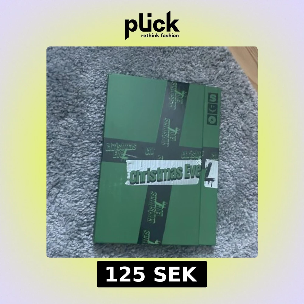 Säljer ett album med titeln 'Christmas EveL'. Omslaget är grönt med text och dekorationer i svart och vitt. Baksidan är röd med en stor vit text. Perfekt för samlare eller fans av musikgruppen.