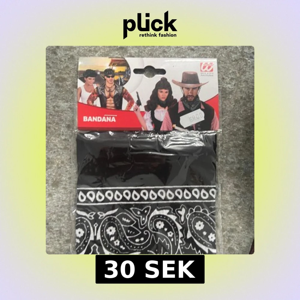 Snygg svart bandana med klassiskt vitt paisleymönster från Milano Party Fashion. Perfekt accessoar för att ge din outfit en cool touch, särskilt till cowboy- eller temafester. Tunn och smidig att knyta runt halsen eller huvudet.