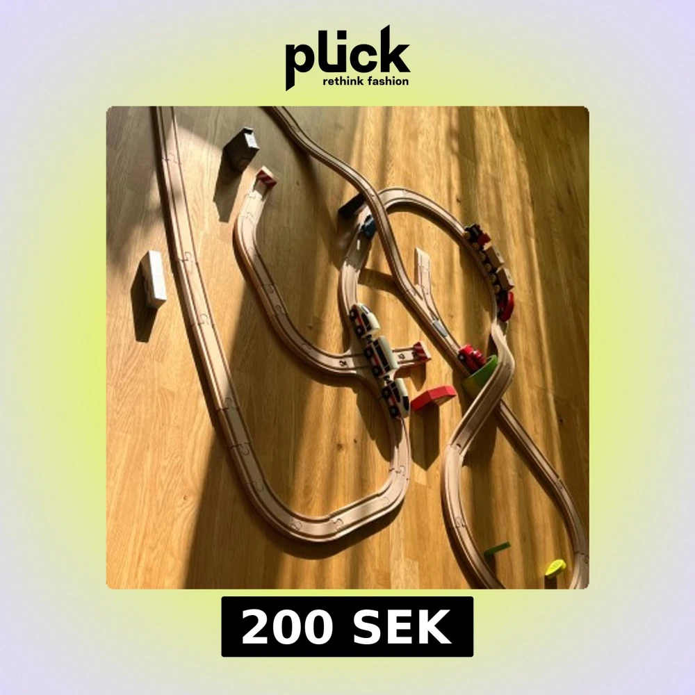 Tågbana av trä från Ikea. Tågen på banan medföljer..