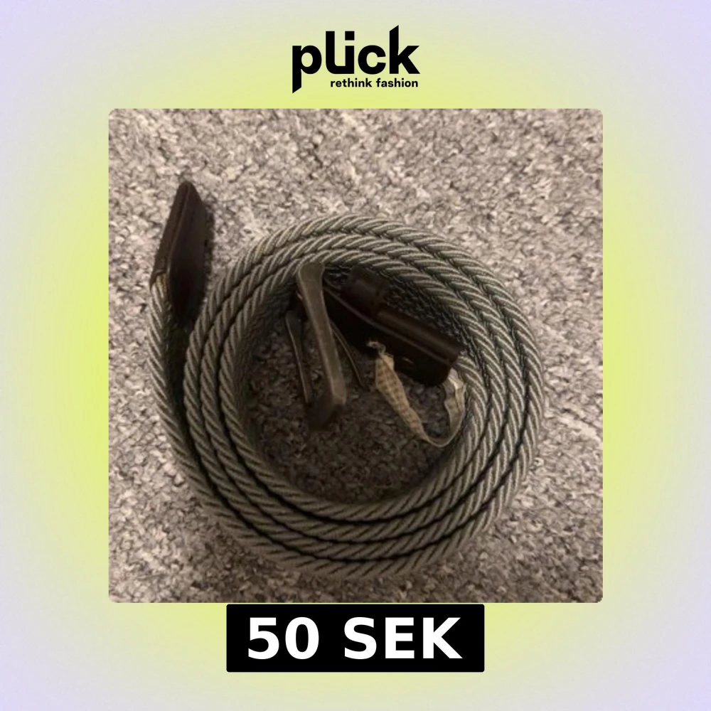Säljer ett grått flätat bälte med snygga läderdetaljer vid ändarna och metallspänne. Bältet har en stilren och enkel design som passar till många olika outfits. Perfekt för dig som vill ha ett bälte som sticker ut lite men ändå är diskret.