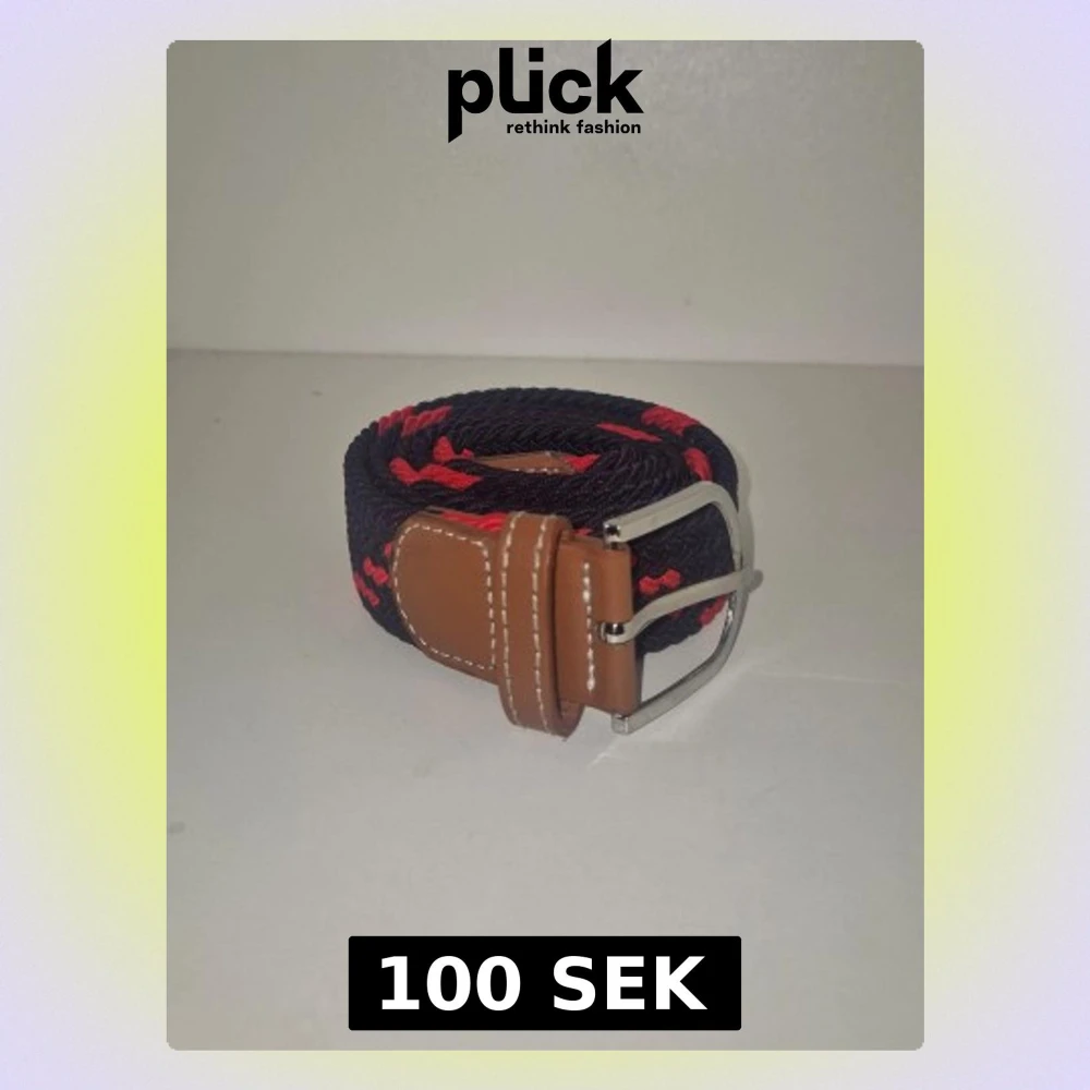 Snyggt flätat bälte i svart med röda detaljer och brunt läder vid spännet. Bältet har ett klassiskt metallspänne och kontrastsömmar på läderdetaljerna. Perfekt för att ge outfiten lite edge och färg.
