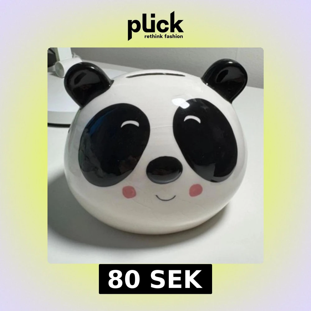 Hej! En supergullig sparbössa i form av en panda, gjord av keramik. Perfekt för både barn och vuxna som vill spara pengar på ett roligt sätt! Använd ett fåtal gånger och är i mycket fint skick. Stilren design, både praktisk och dekorativ :)) 🖤🤍