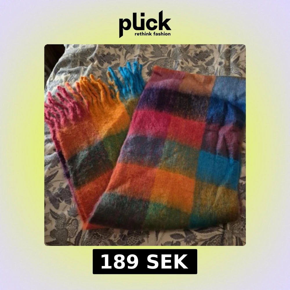 En stor och fluffig halsduk med rutigt mönster i starka färger som blå, orange, rosa och grön. Halsduken har långa fransar i olika färger och är perfekt för att liva upp vinterlooken. Materialet känns mjukt och värmande, perfekt att svepa in sig i kalla dagar.