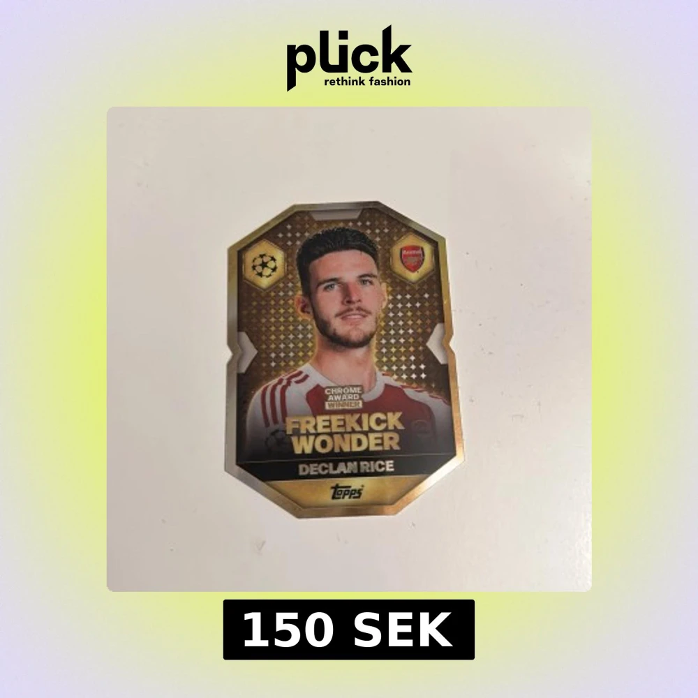 Unik samlarkort från Topps med Declan Rice, Arsenal-mittfältare och Chrome Award Winner. Kortet hyllar hans mästerliga frisparkar i Champions League mot Real Madrid. Perfekt för unga fotbollsfans och samlare som vill ha något extra i sin kollektion.