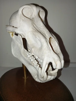 Jakttrofé Anubisbabian på träfot. Skallen är välbevarad och har tydliga tänder och detaljer, vilket gör den till ett intressant samlarobjekt eller dekorationsföremål. Inga synliga sprickor eller större skador, endast naturligt slitage. Perfekt för undervisning eller inredning.