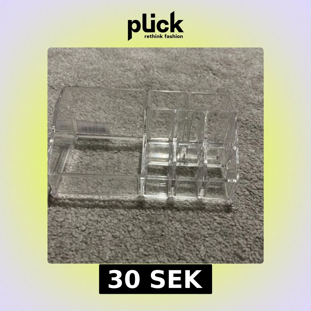 Sminkorganiserare i plast med flera fack för att hålla ordning på sminkprodukter. 💕