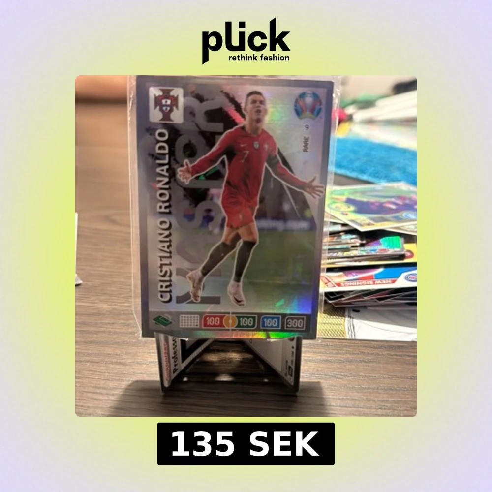 Samlarkort från Panini Adrenalyn XL UEFA Euro 2020 med Cristiano Ronaldo i Portugals röda matchställ. Kortet har holografisk yta och visar statistik samt spelarens position som forward. Perfekt för fotbollsfans och samlare.Near Mint condition och bra centering.