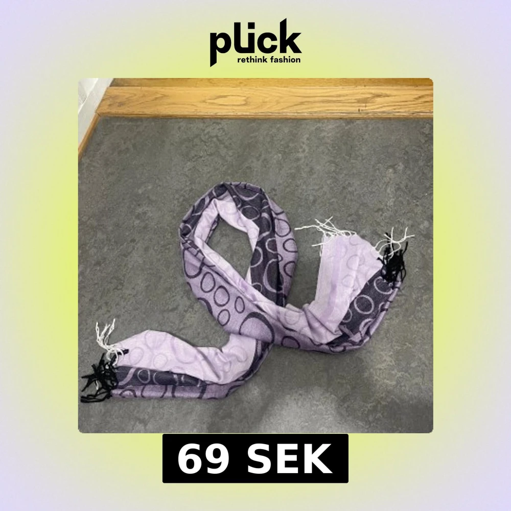Snygg ljuslila halsduk med svarta och vita cirklar i olika storlekar. Halsduken har fransar i svart och vitt i ändarna och är tillverkad i ett mjukt, tunt material som känns skönt mot huden. Perfekt accessoar för att lyfta din outfit.
