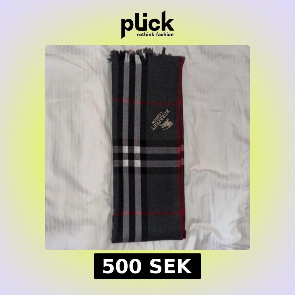 Snygg halsduk från Burberry London med klassiskt rutigt mönster i mörkgrått, svart, vitt och röda detaljer. Broderad logga och fransad kant. Perfekt accessoar för att lyfta din outfit med lite lyxig London-vibe.